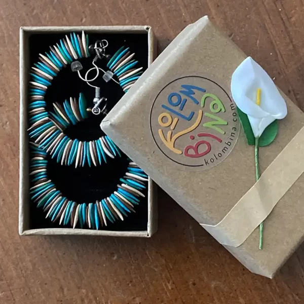 South American artisans handmake these earrings from dried melon seeds. They offer a variety of natural dyes made from plants and fruits, making each piece unique and all-natural. These earrings add a pop of color to any outfit. The skilled artisans from Colombia design and handmake each pair. In Colombia, artisans also use melon seeds to create other pieces, such as bracelets and collars.